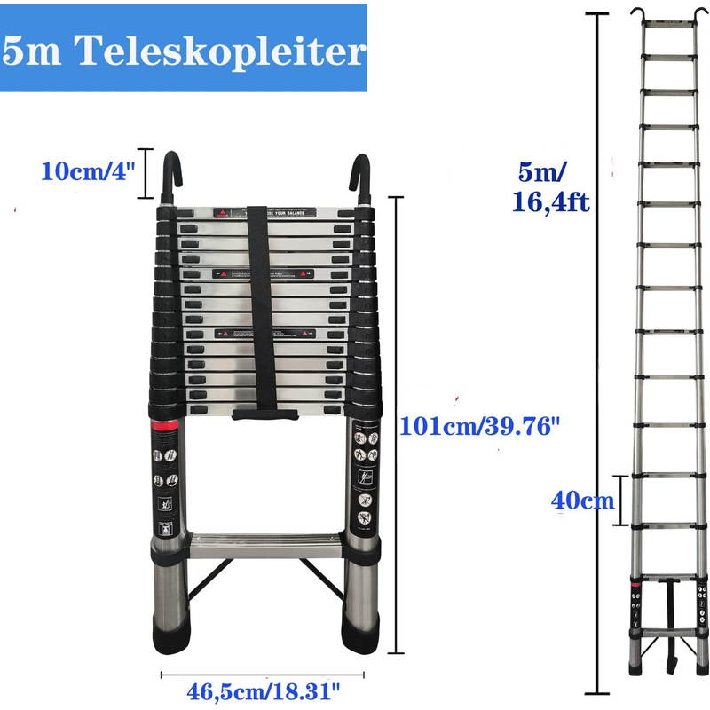 ✅ Multi-purpose Portable Ladder - The telescopic ladder 5m can be used as an extension ladder for replacing the light bulb, cleaning your windows, interior decoration and much more.