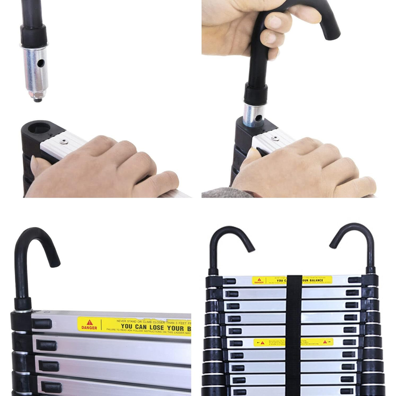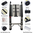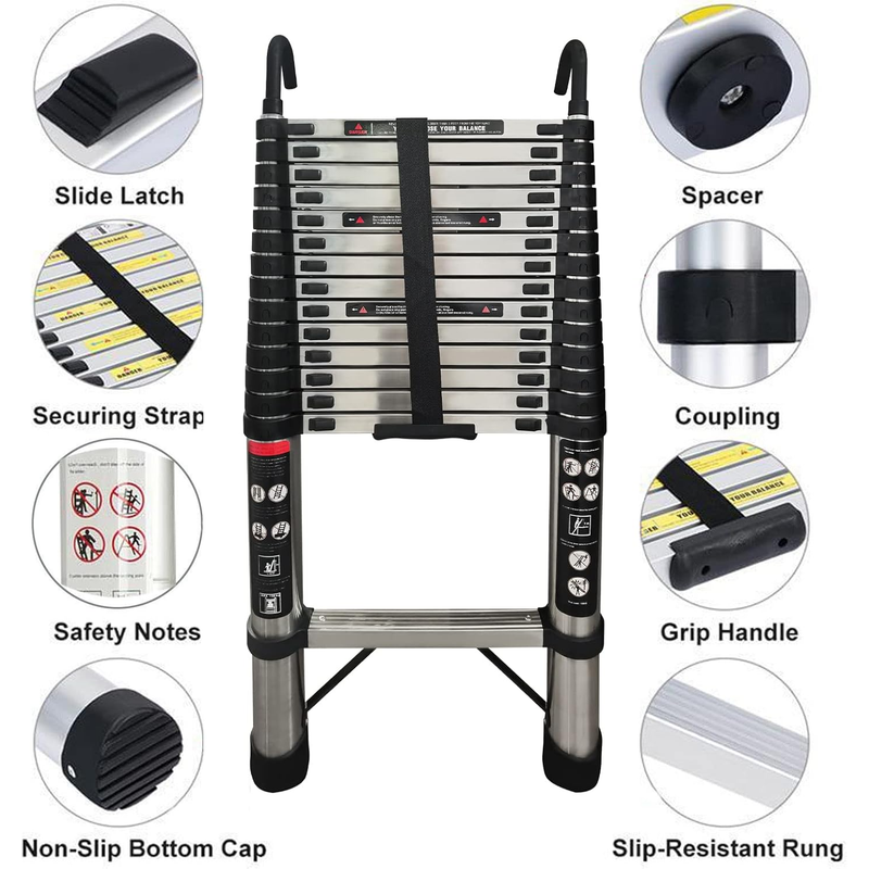 ✅ Updated Stainless Steel 5m Telescopic Ladder with 12 step - The 5M extension ladder made of durable steel with Clean-Touch anodized finish for more safety than aluminum ladder in daily life, whether outdoors or indoors.