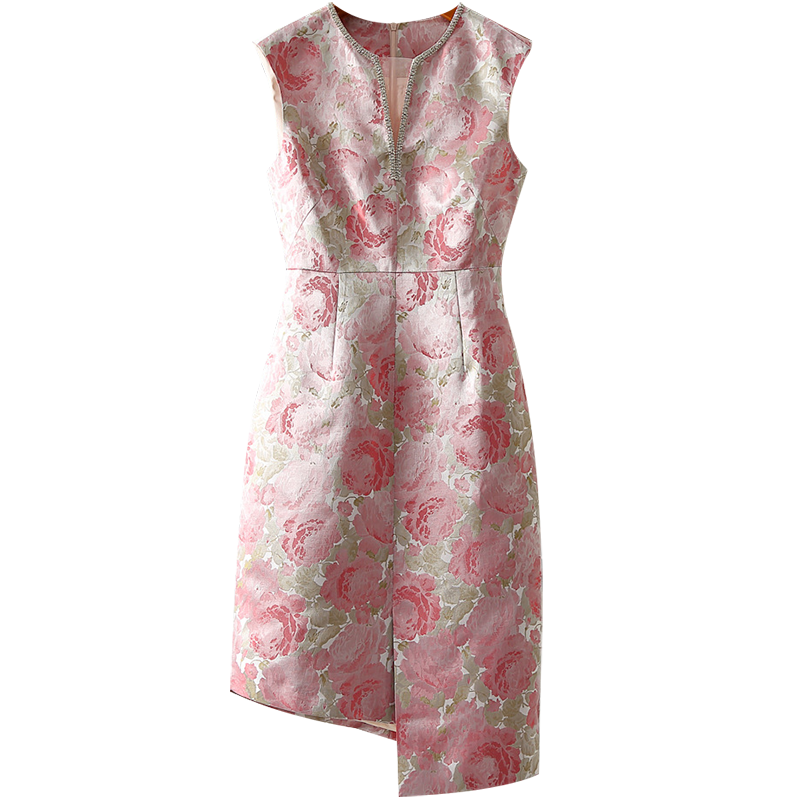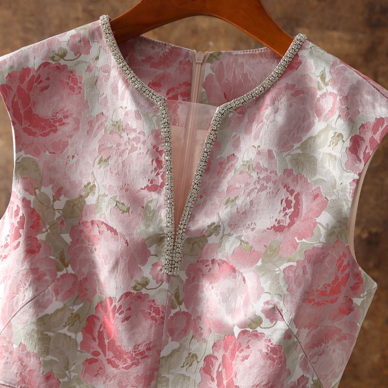 Temperament Diamond Studded V-neck Sleeveless Vest Skirt French Business Commuting Dress with Irregular Hip Wrap Skirt