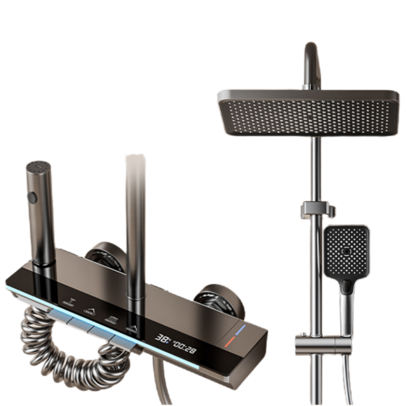 Temperature Digital Display Shower Set Faucet Bathroom Wall Mounted 4 Ways Water Outlet Rainlfall Hot Cold Shower Faucet System