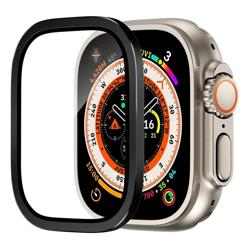 Tempered Glass for Apple Watch Ultra 49mm Titanium Metal Frame Anti-Scratch film for Series Ultra 2 Screen Protector Accessories