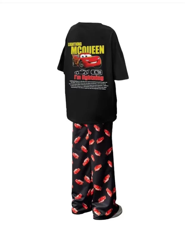 The Best-selling New Product The Car Lightning McQueen & Sally Spring_Summer T-shirt And Pajama Pants Set For Adult Couples Suit