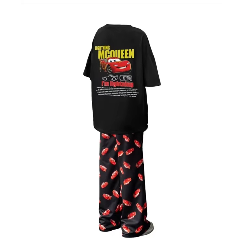 The Best-selling New Product The Car Lightning McQueen & Sally Spring_Summer T-shirt And Pajama Pants Set For Adult Couples Suit