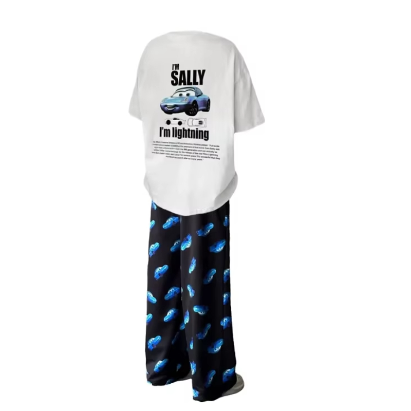 The Best-selling New Product The Car Lightning McQueen & Sally Spring_Summer T-shirt And Pajama Pants Set For Adult Couples Suit