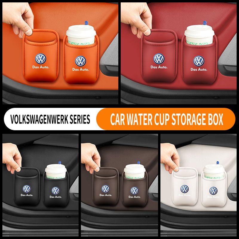 The multi-functional leather storage case for car water cups is suitable For VW Volkswagen Polo Tiguan Passat Golf Jetta Lavida
