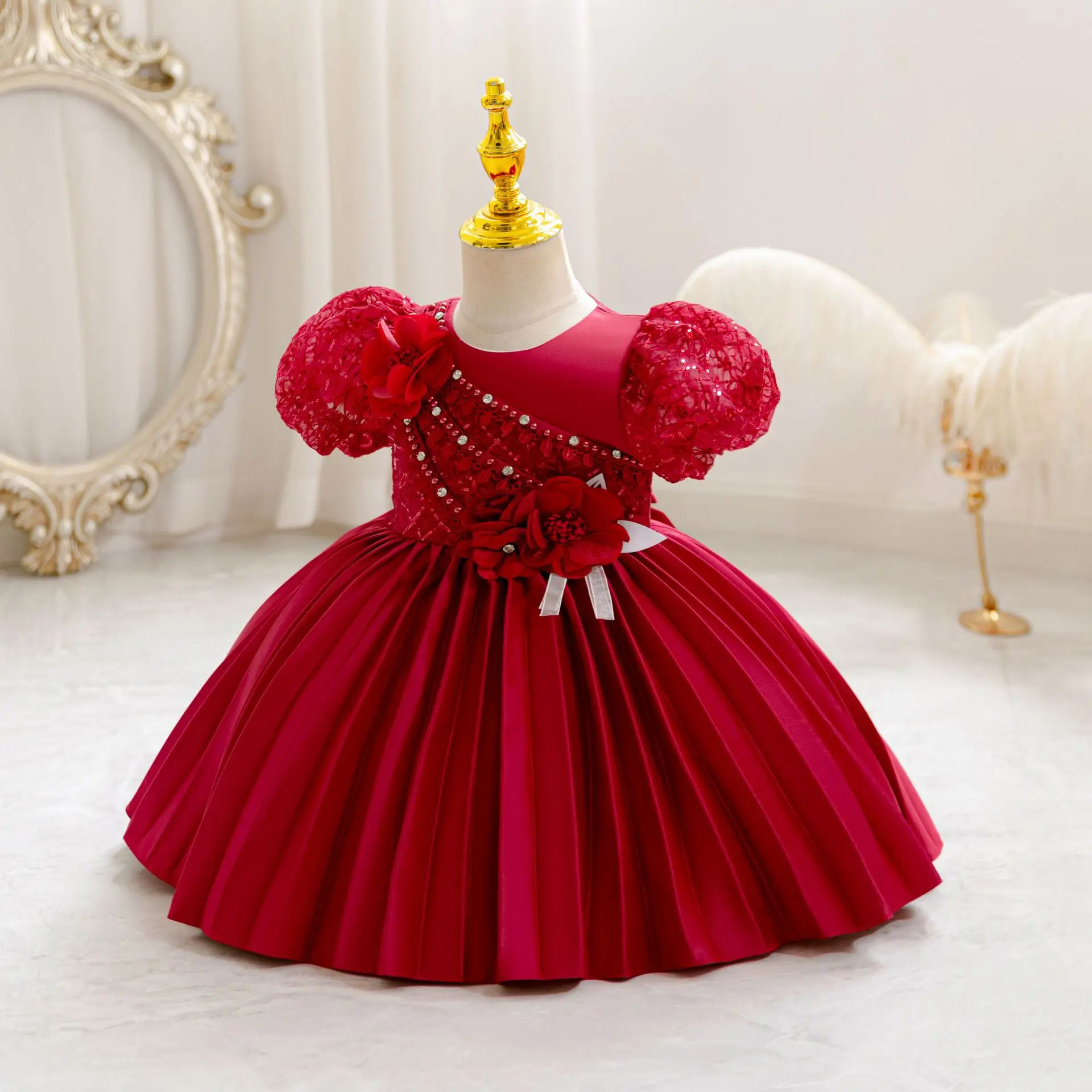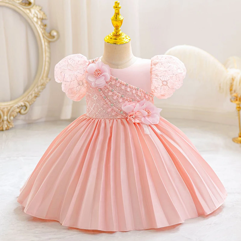 The new girl baby clothes one year old birthday party baptize the flower girl net yarn 0-4 years old princess skirt newborn clot