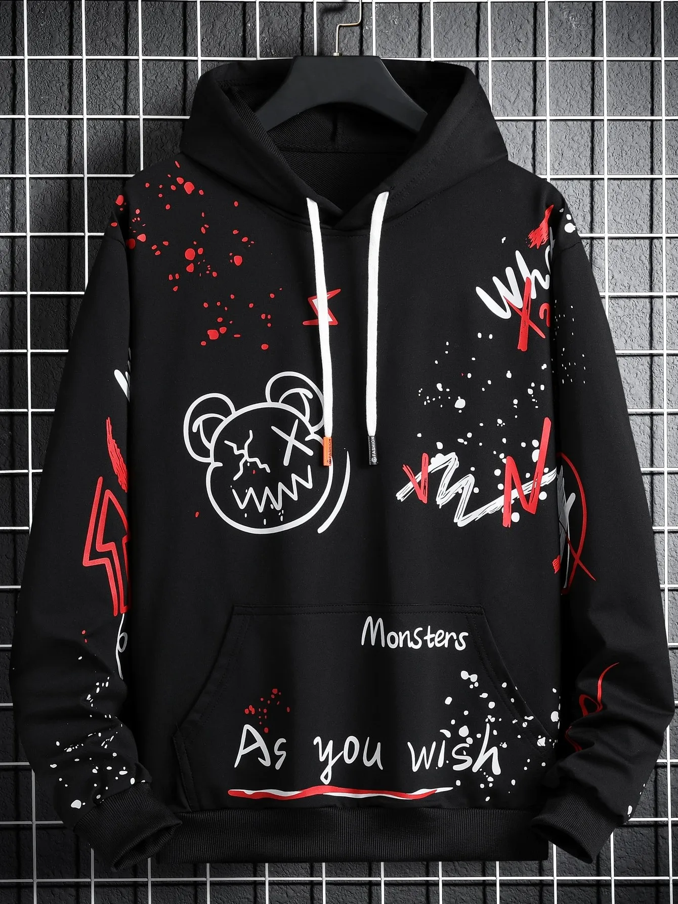 The new men's hooded sweatshirt for Spring and Autumn 2025 features a casual comfortable and soft 3D graffiti pattern print