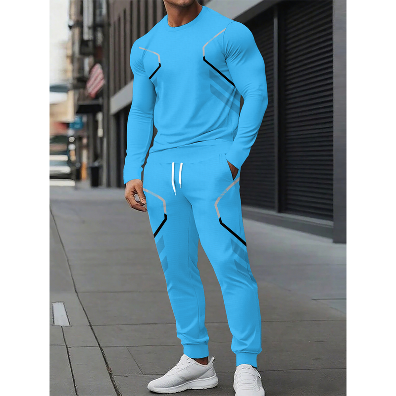 The new men's round-neck sweatshirt set for Spring and Autumn 2025 features street fashion and comfort with 3D pattern printing