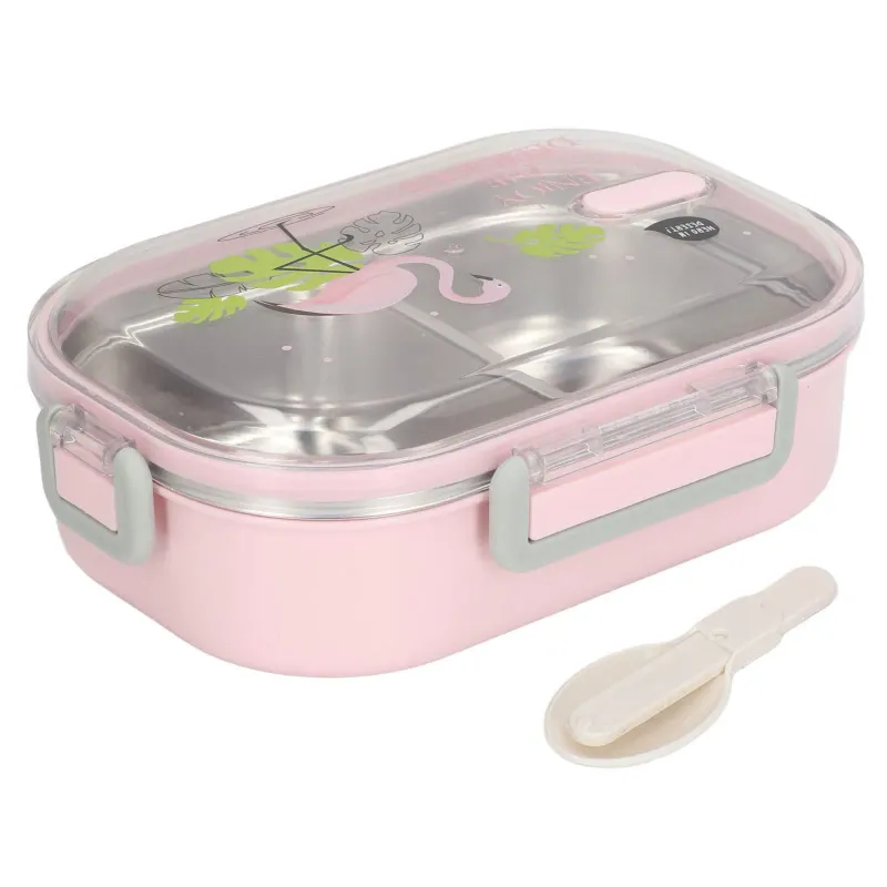 304 Stainless Steel Lunch Box Compartment Liner Thermal Insulation Bento Lunch Box Illustration Style Leak Proof Container for Student Children