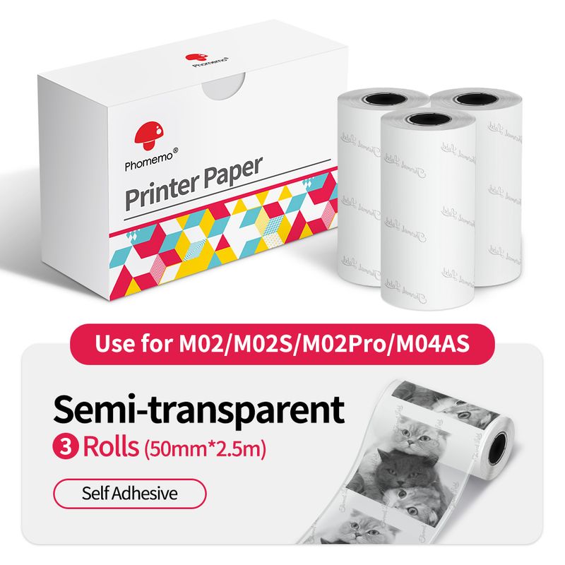 Thermal Paper Original Phomemo Sticker 3 Rolls fit M02 M02S M02 Pro Thermal Printer Mini Thermal Photo Sticker