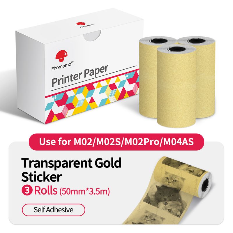 Thermal Paper Original Phomemo Sticker 3 Rolls fit M02 M02S M02 Pro Thermal Printer Mini Thermal Photo Sticker