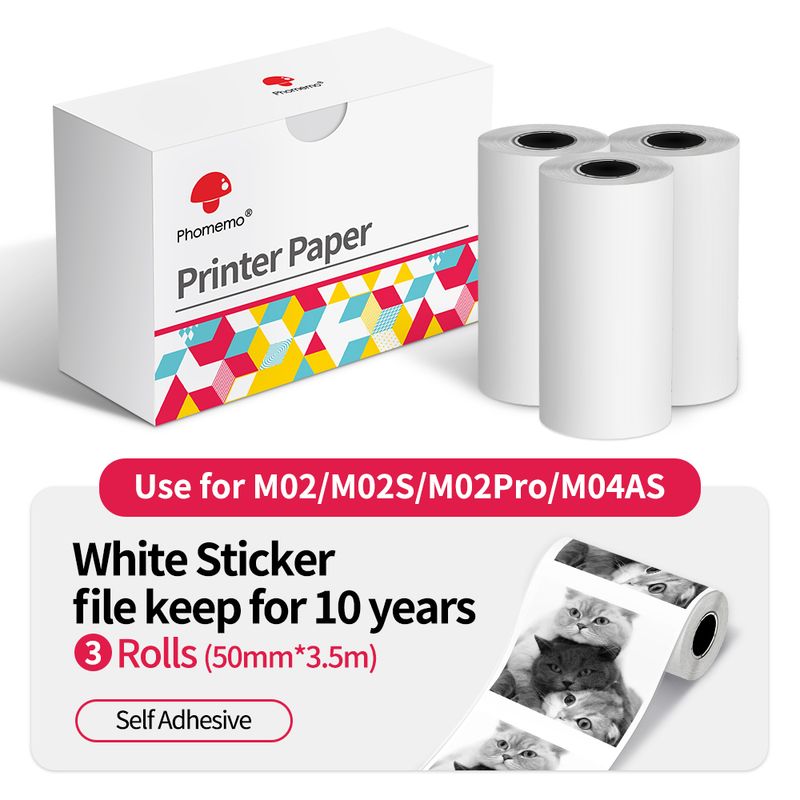 Thermal Paper Original Phomemo Sticker 3 Rolls fit M02 M02S M02 Pro Thermal Printer Mini Thermal Photo Sticker