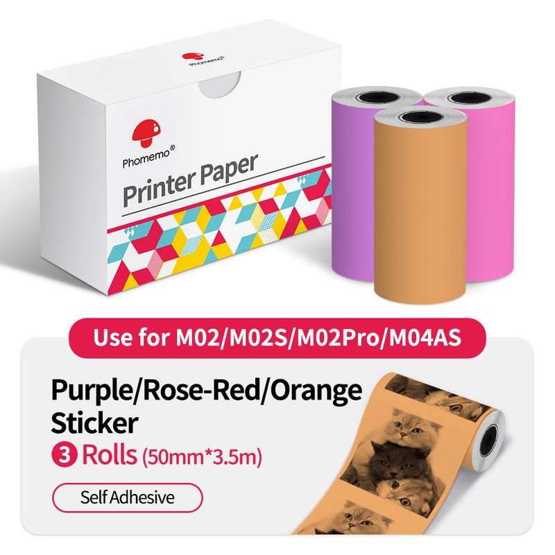 Thermal Paper Original Phomemo Sticker 3 Rolls fit M02 M02S M02 Pro Thermal Printer Mini Thermal Photo Sticker