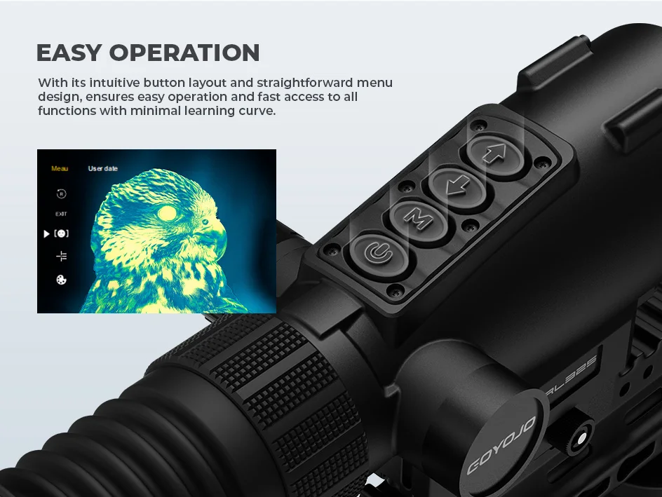 ● Six Image Modes + Smart Thermal Optics: Easily switch between six image modes to suit different conditions and preferences. The GOYOJO scope offers flexible thermal options to enhance visibility, from open fields to dense forest, day or night.