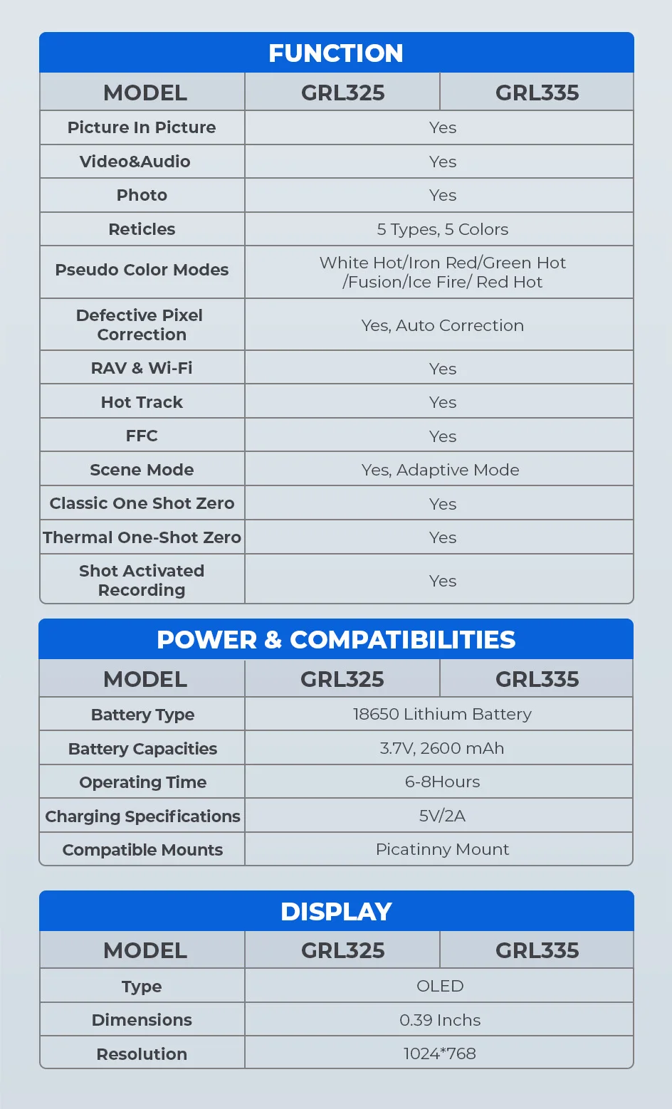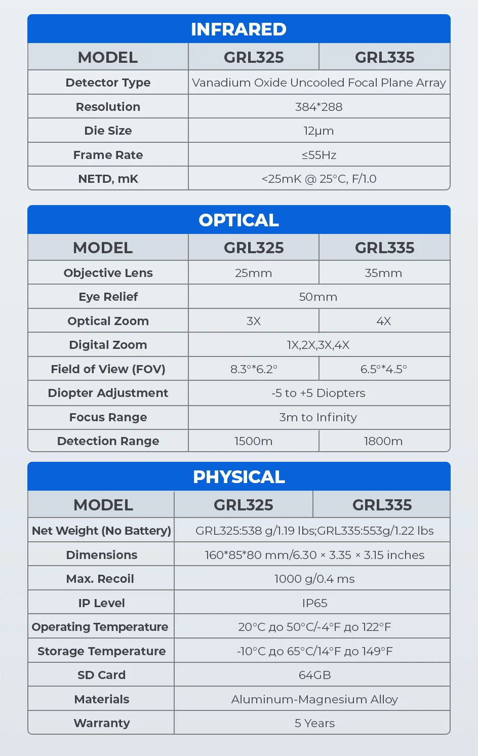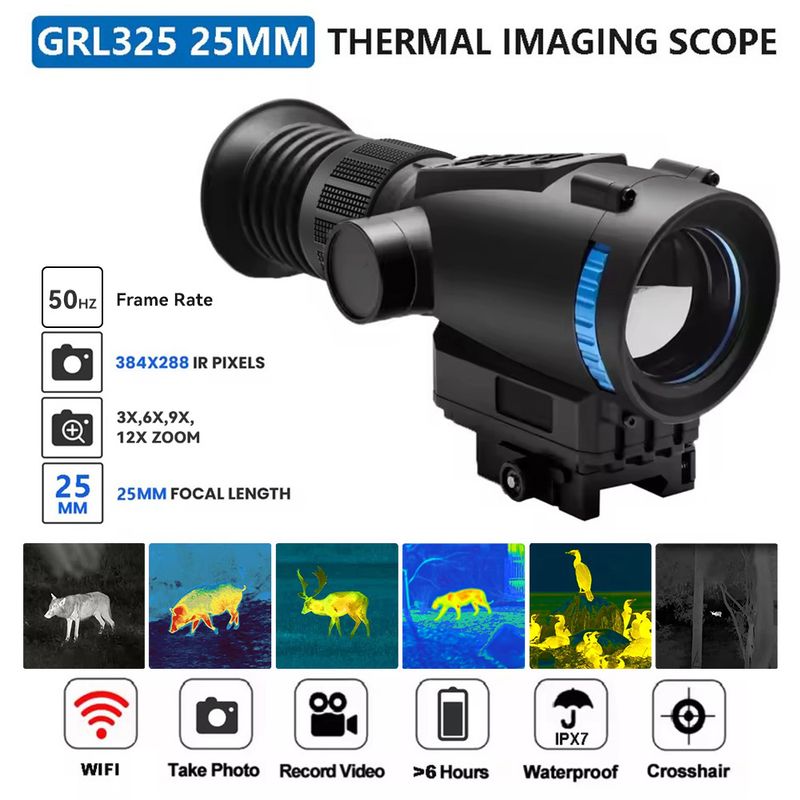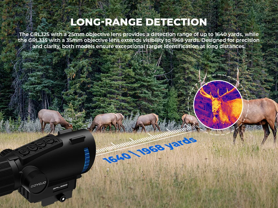● High-Performance Thermal Scope with Superior Clarity: GOYOJO GRL325 features a 384×288 resolution with a 12μm sensor. Its NETD <25mK ensures high thermal sensitivity, capturing fine temperature details for clear target recognition in both day and night vision thermal imaging.