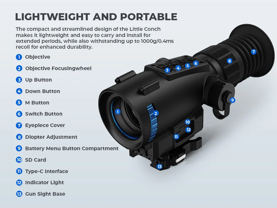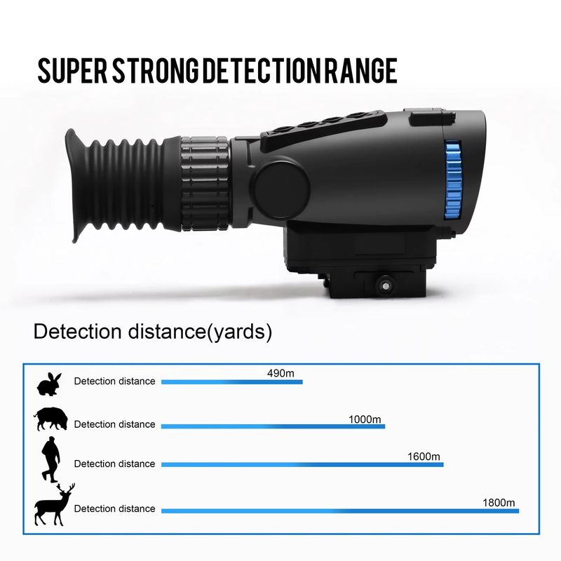 ● Long-Range Detection & Tracking: Up to 1640 yards detection range, this thermal vision device captures distant with precision. The 55Hz frame rate ensures smooth tracking of fast-moving objects in any environment.