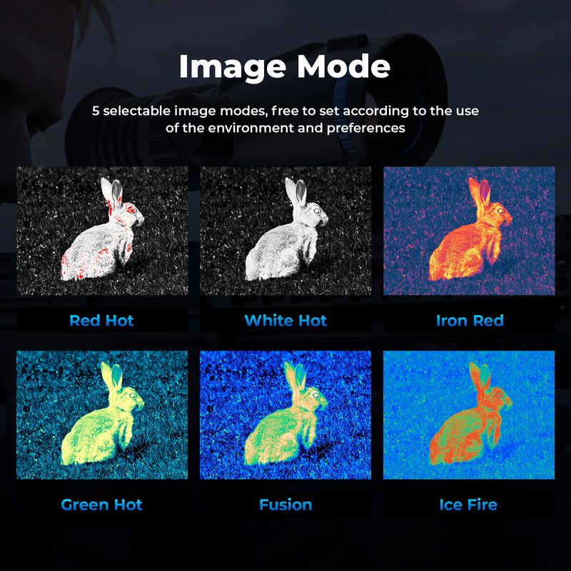 ● Six Image Modes + Smart Thermal Optics: Easily switch between six image modes to suit different conditions and preferences. The GOYOJO scope offers flexible thermal options to enhance visibility, from open fields to dense forest, day or night.