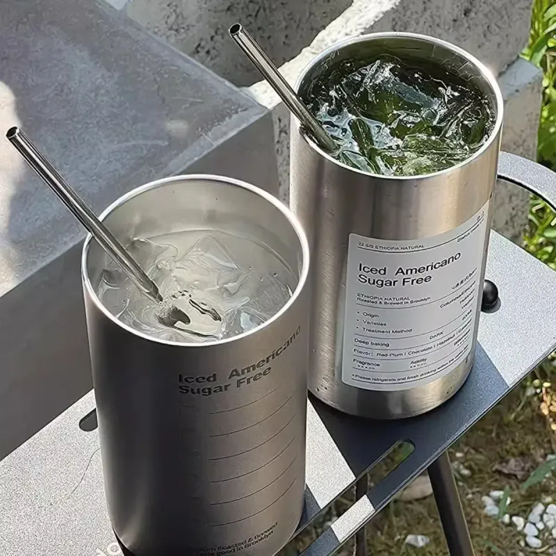 600ml Thermos Cup Portable 304 Stainless Steel Coffee Mug Thermal Leak-proof Water Bottle with Straw Insulated Bottle Drinkware