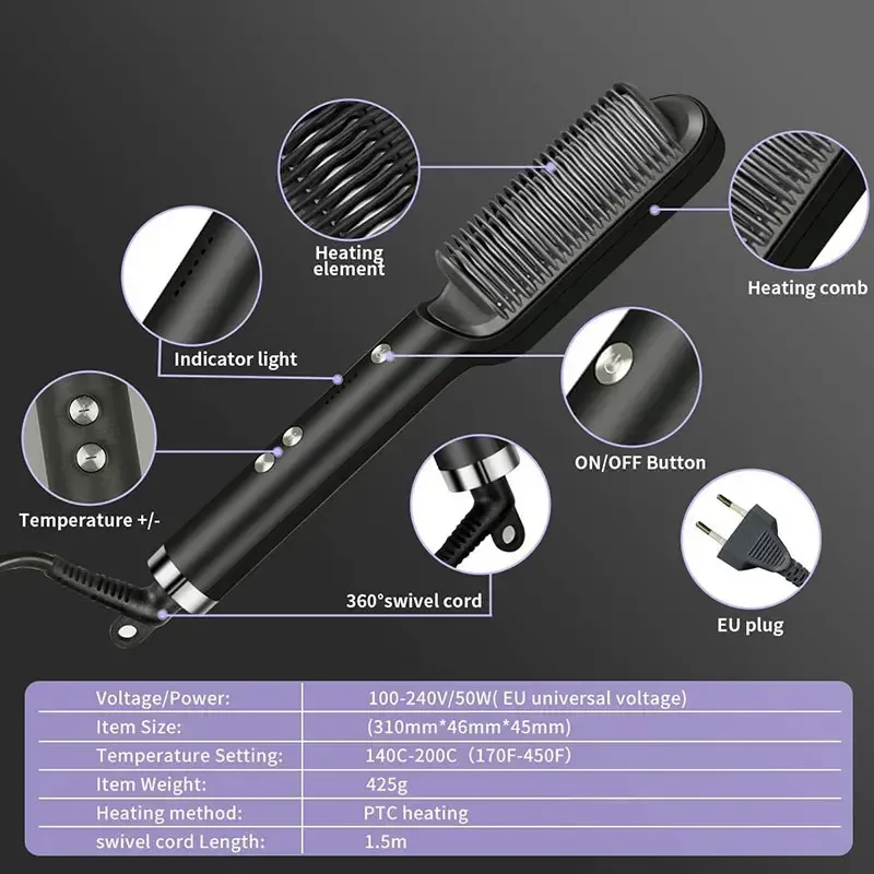 Smooth comb to reduce hair pulling Heat insulation to prevent hot hands