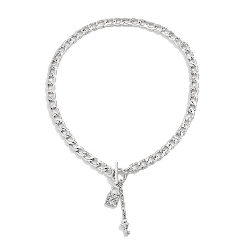 Thick Chain With Shiny Lock And Key Pendant Necklace For Women Trendy Ladies Accessories On The Neck Fashion Jewelry Female 02 Bracelet White K2326 Alloy