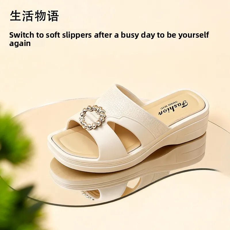 Thick Heel Anti-Slip Soft Bottom Slippers Women's Casual Indoor Outdoor Home Slippers Comfortable Breathable Plastic Slip-On...