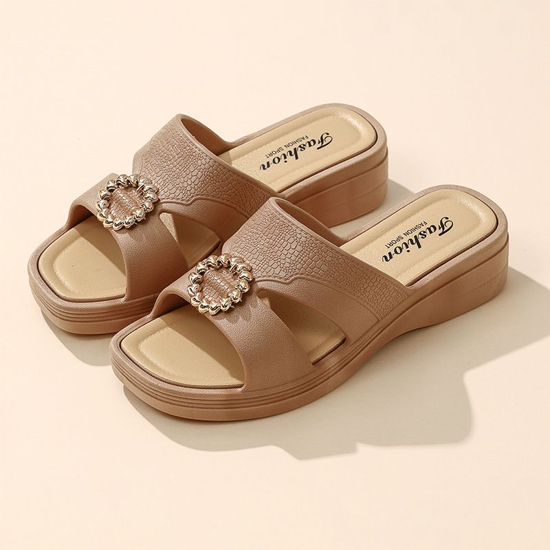 Crafted with a breathable plastic upper, these slippers allow air circulation, keeping your feet cool and comfortable all day long.