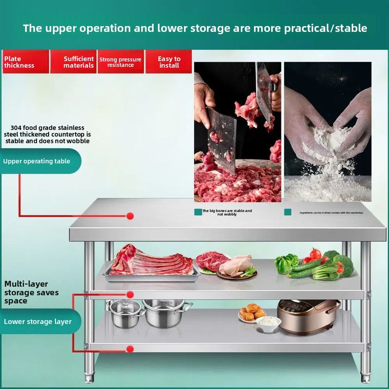 Thickened 304 stainless steel double-layer console, hotel kitchen console, work table, loading table, packing countertop