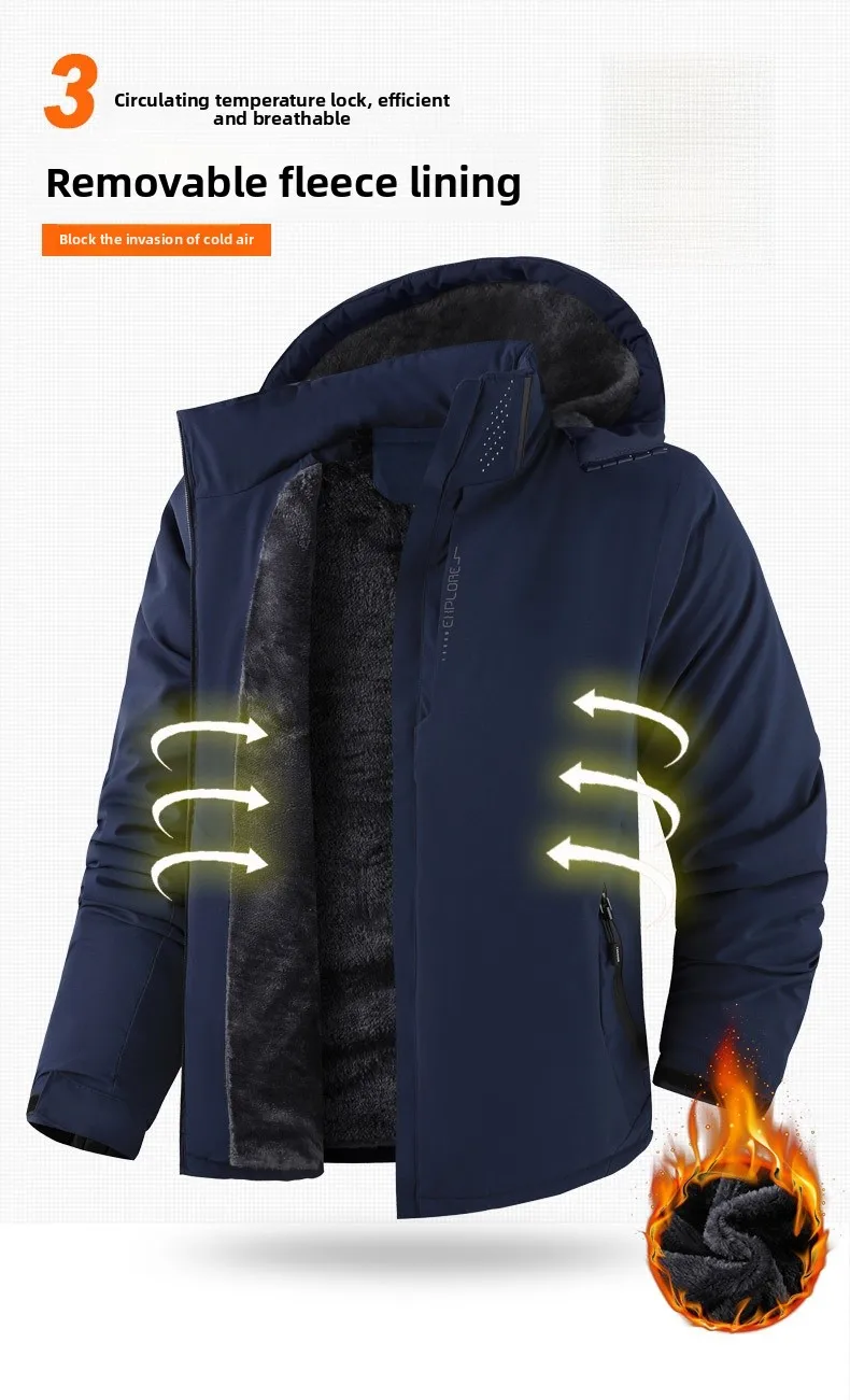 Thickened Fleece Winter Jacket for Men Outdoor Windproof Waterproof Cotton Coat Large Size Warmthly Designed for Camping And...