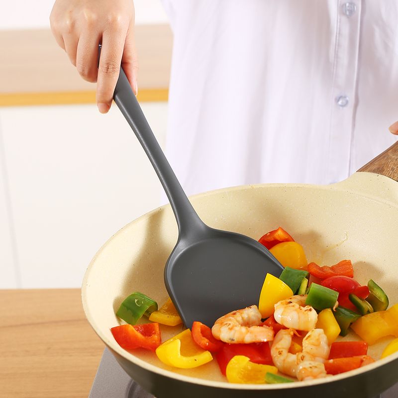 Thickened gray silicone kitchen utensils, kitchen spatula, soup spoon, kitchen multifunctional cooking silicone spatula