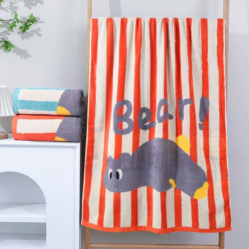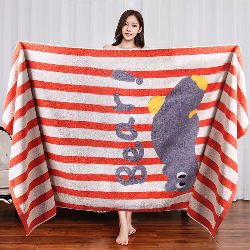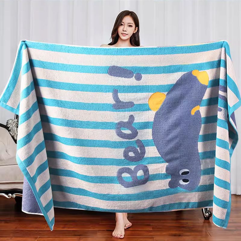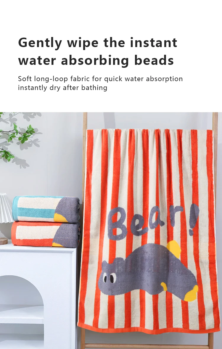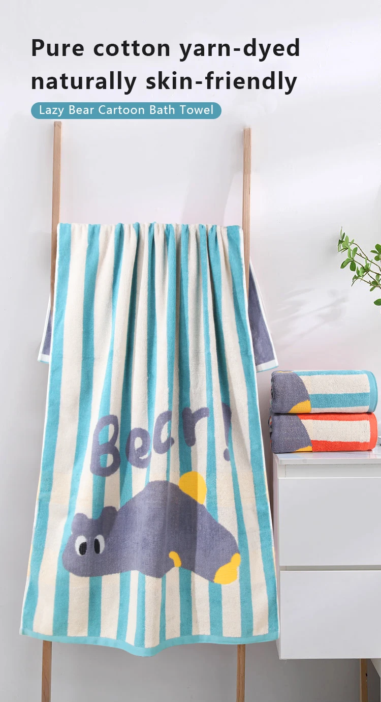 Thickened high-quality cat-themed cotton color-block bath towel, absorbent, durable, lint-free, bright, suitable for beach and