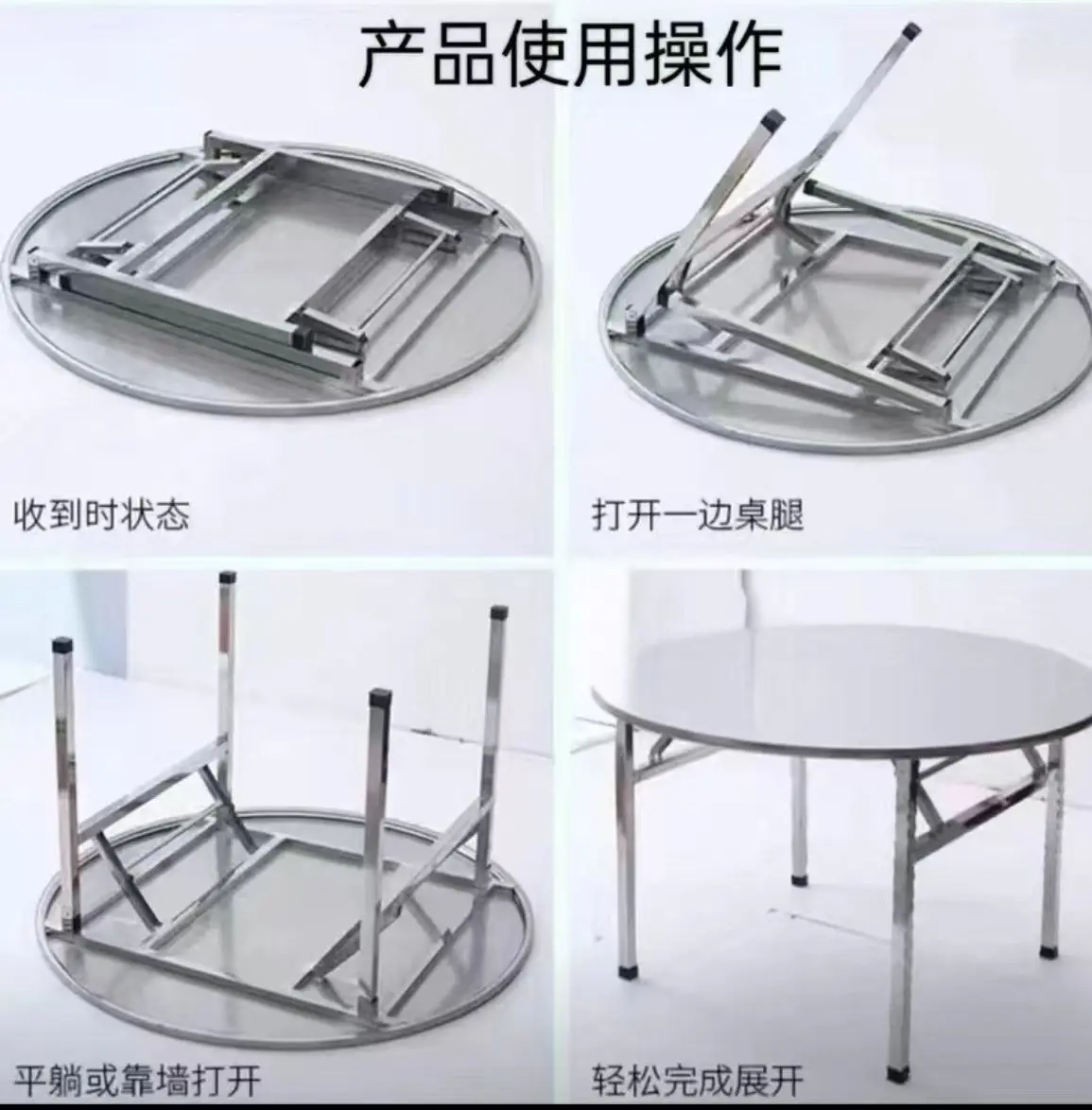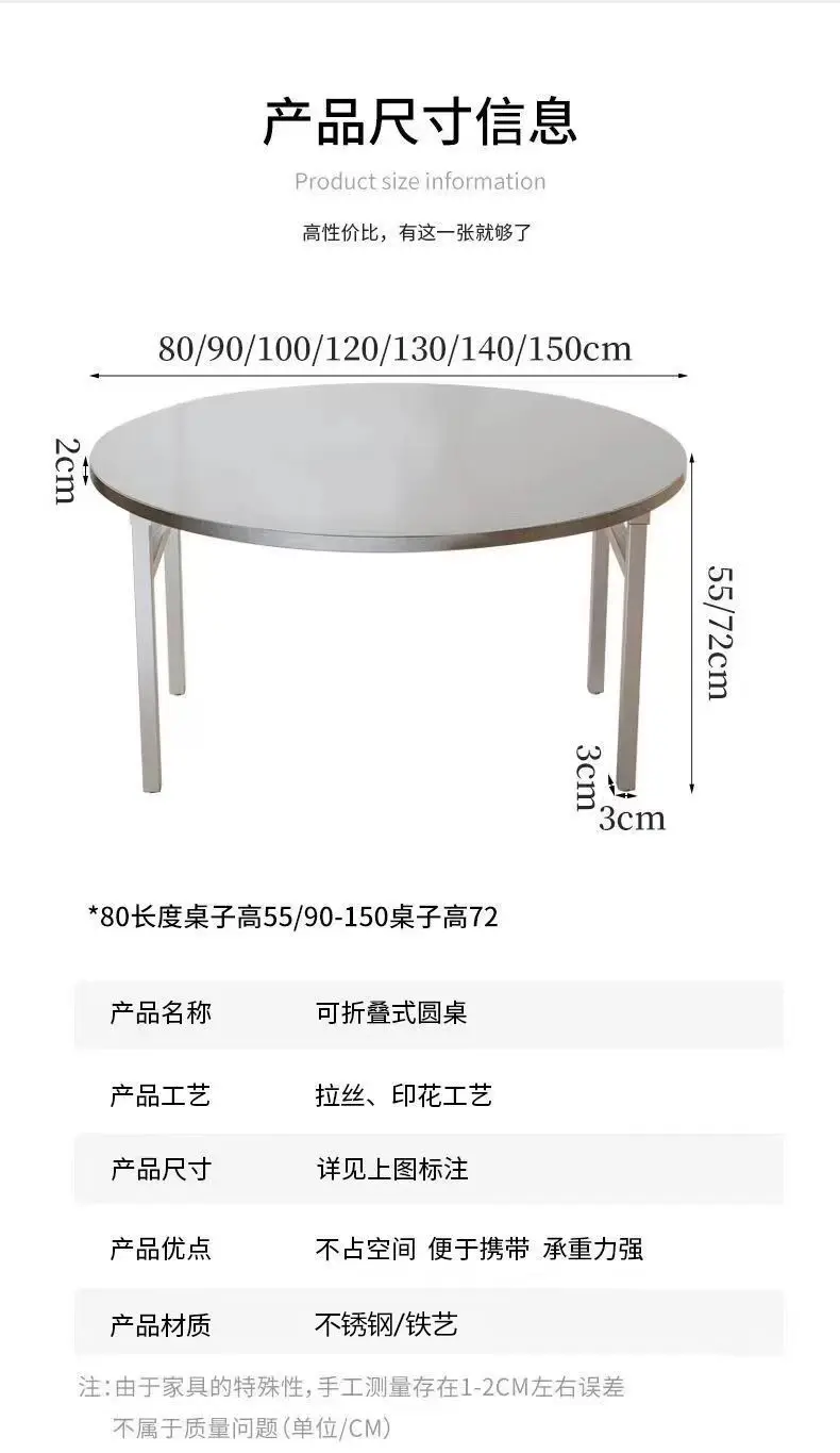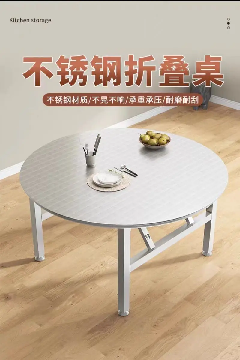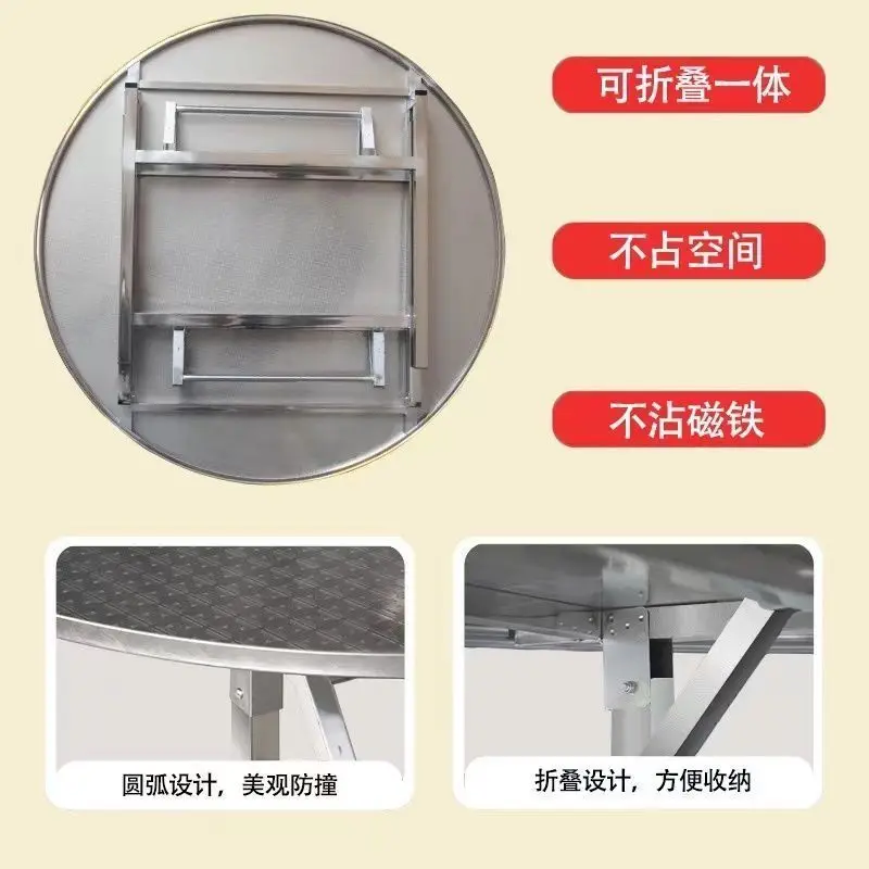 Thickened Stainless Steel Folding Round Table One-piece Square Table Dining Catering Outdoor Stall Banquet Household Dining