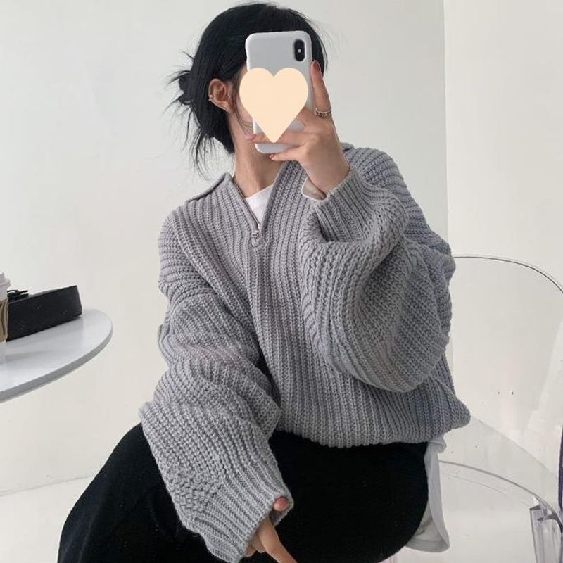 Thickened Warm Lantern Cuff Head Sweater Apricot One size