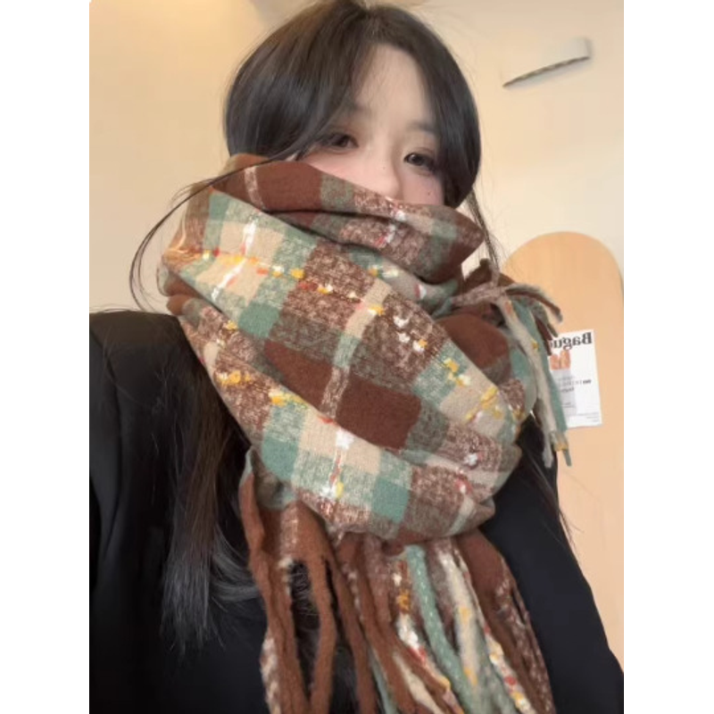 Thickened Winter Scarf Women's Fashionable Atmosphere Knitted Polyester Plush Warm Khaki Versatile Business Casual Style