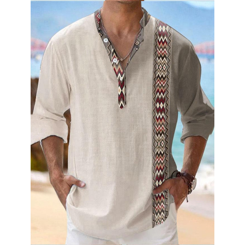 Thin Casual Digital Bamboo Linen Hawaiian Long Sleeve Shirt 57025S9557915 M