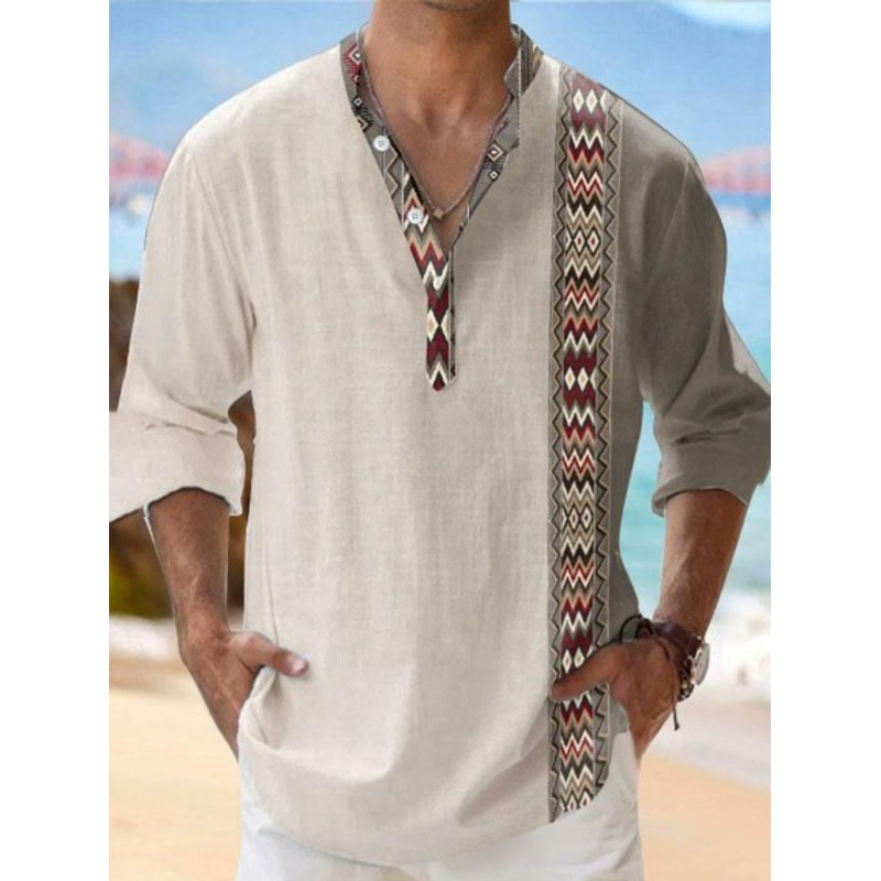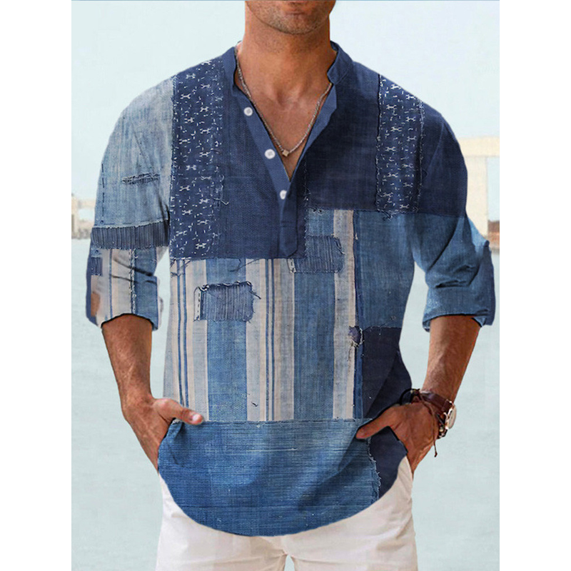 Thin Casual Digital Bamboo Linen Hawaiian Long Sleeve Shirt Lilac 4XL