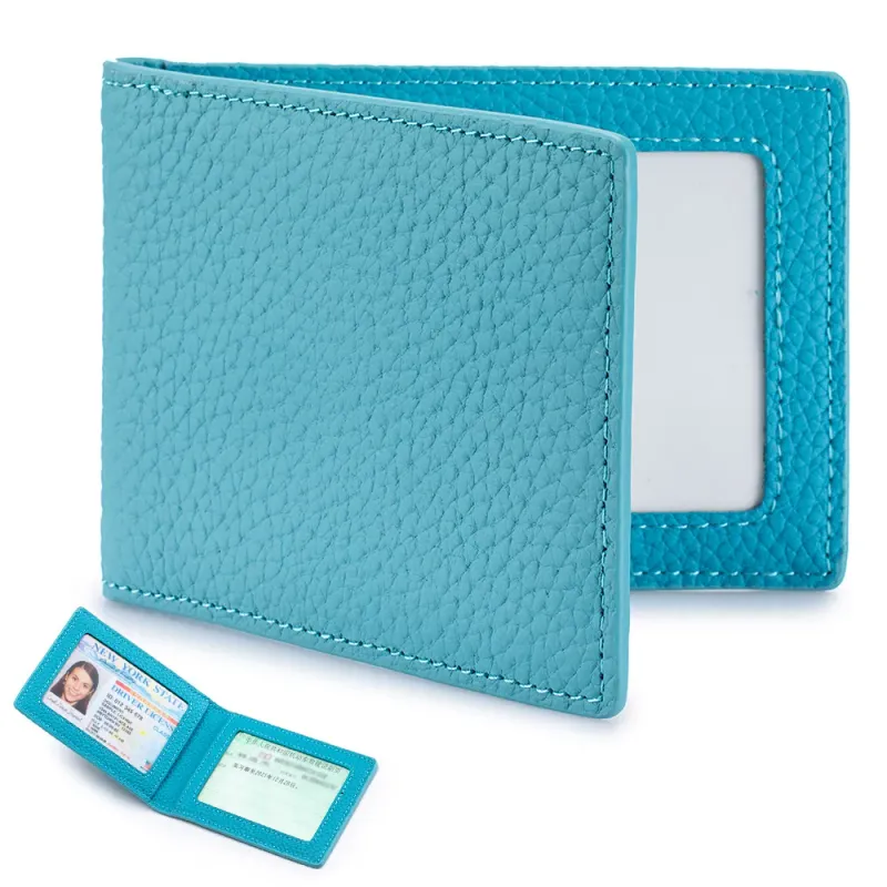 Thin Minimalist Bifold Design Driver's Licence Cover Genuine Leather ID Badge Window Slot Credit and Debit Vaccinum Cards Holder