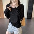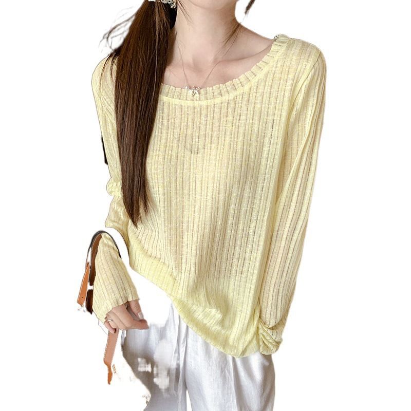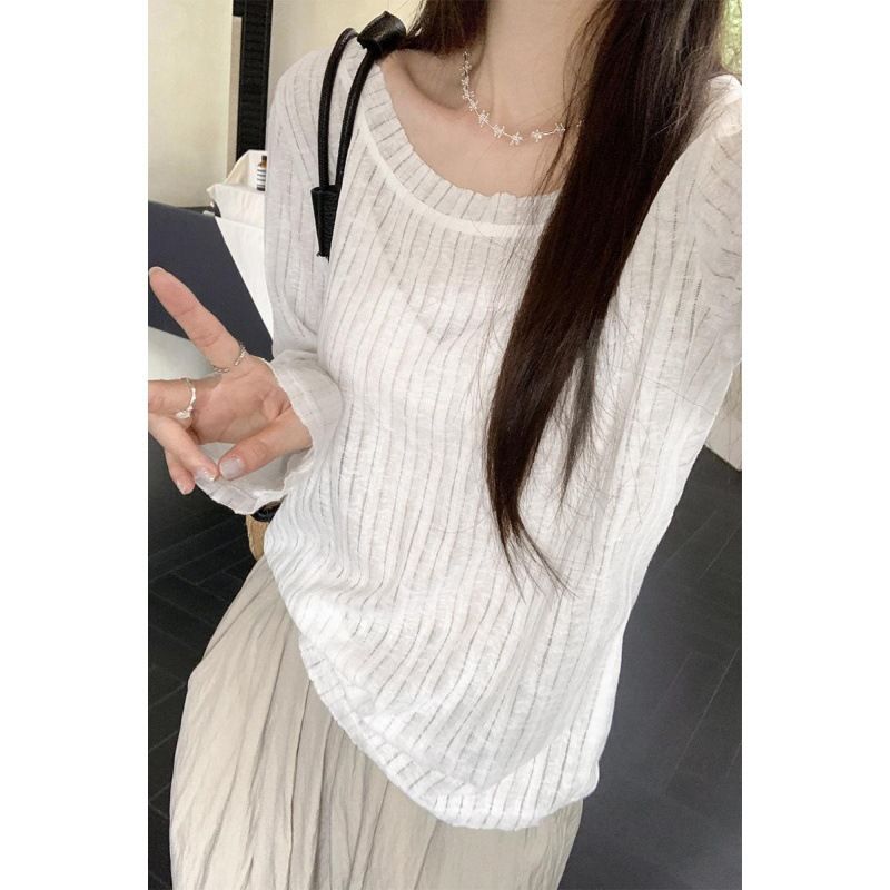 Thin Striped Loose All-matching Long Sleeve Top Black S