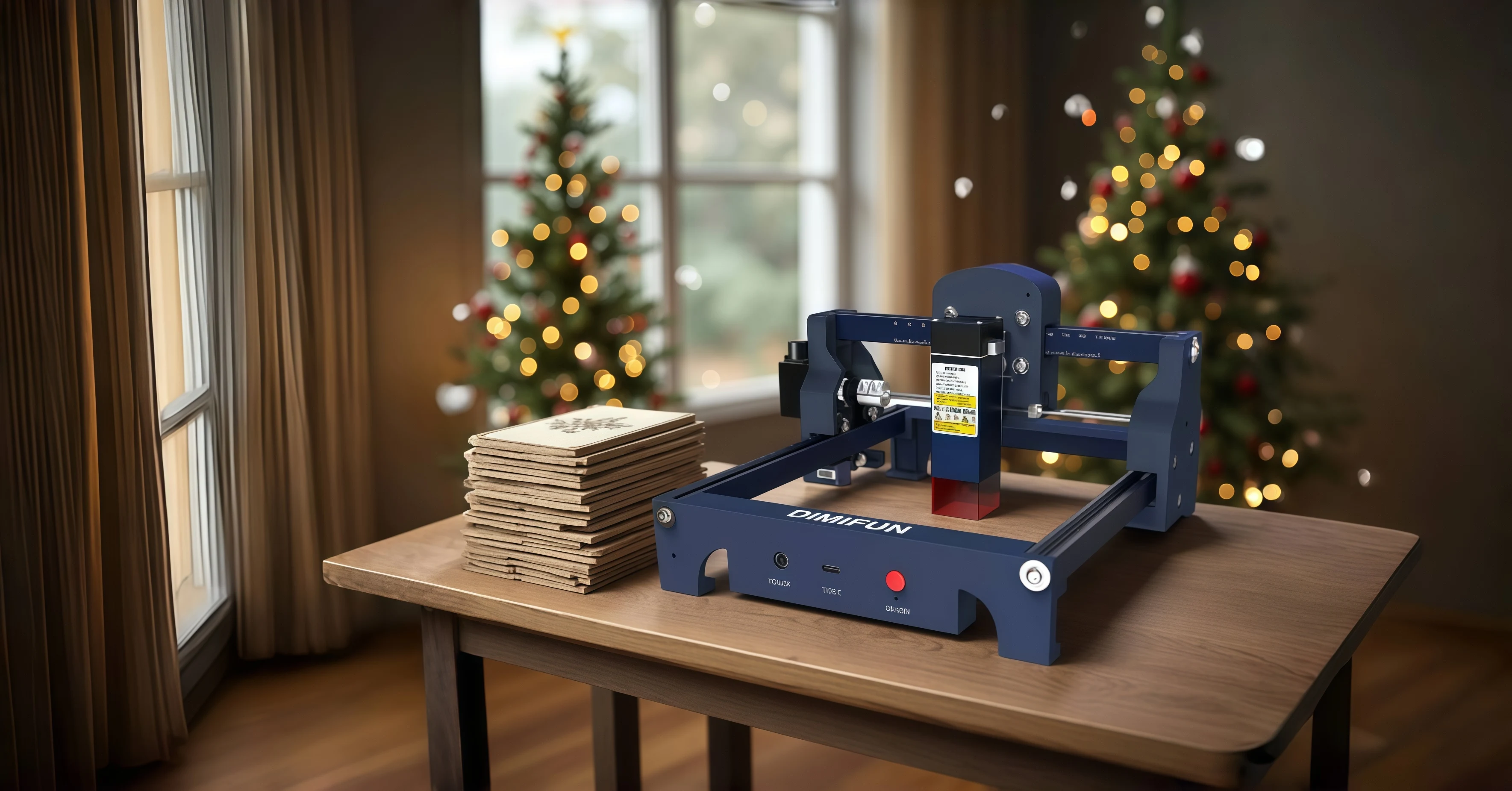 Laser can cut plywood up to 2-3 mm thick, black acrylic sheet 2-3 mm, carton 2 mm, leather 0.5 mm, etc.