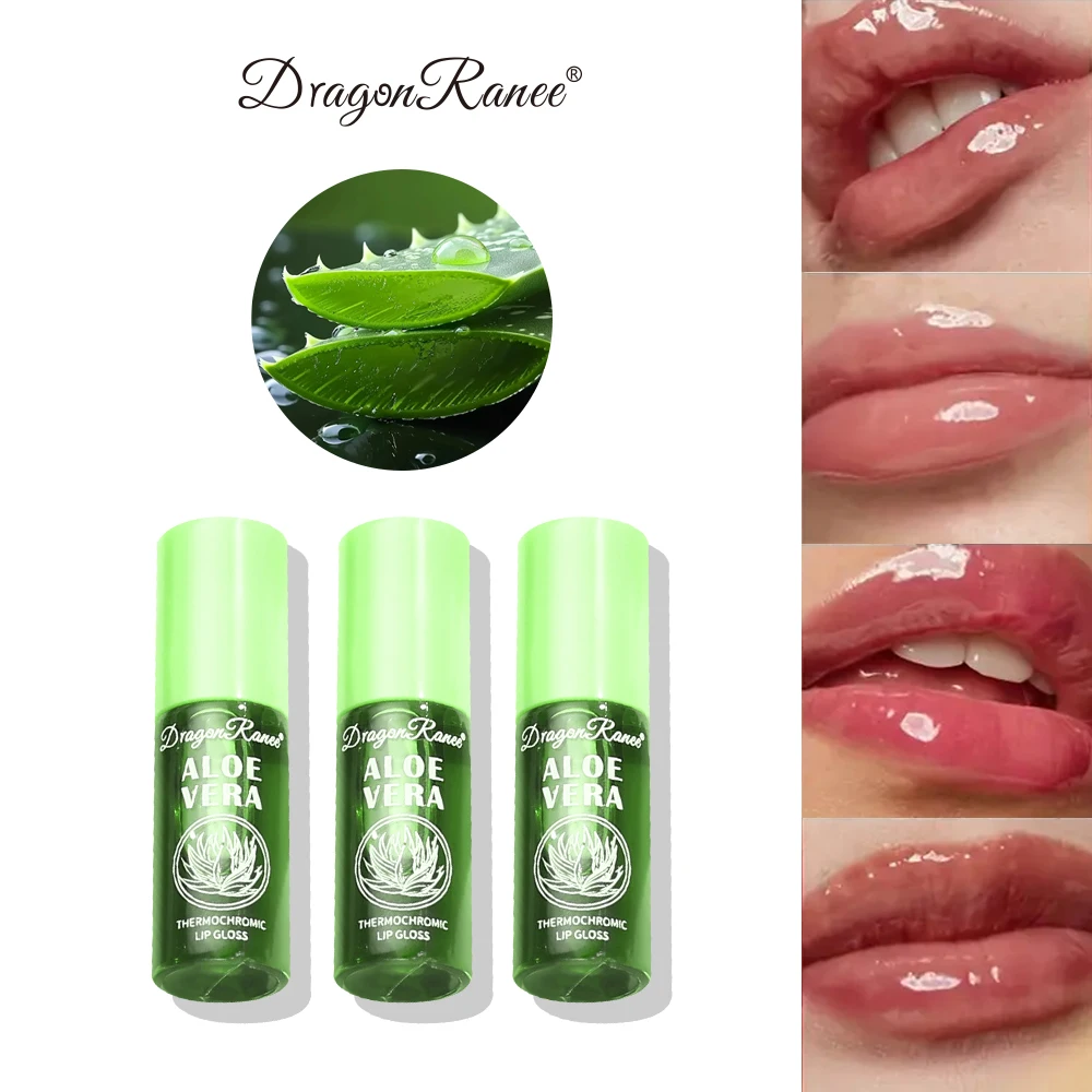 Three Aloe Vera Lip Oil Moisturizing, Moisturizing, Discoloration, Hydrating Lip Gloss, Hydrating and Coloring, Autumn and Winter Base Lip Care Liquid, Water-Glossy Mirror, Gentle Lip Glaze