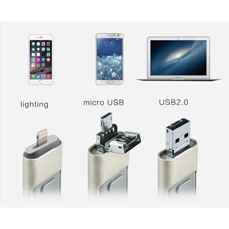 Three In One OTG USB Flash Disk For Computer And Mobile Phone Gold 8GB
