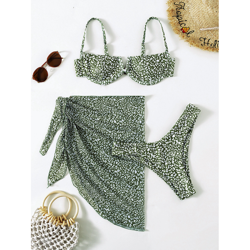 Three-piece Floral Bikini Beach Dress Green M