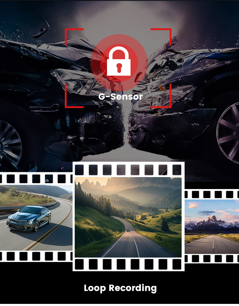Functions: loop video, parking surveillance, collision reaction, front and back video