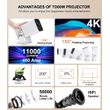 The TD80W portable projector delivers an astonishing 11000 lumens brightness, 450Ansi Lumens,native 1080P Full HD resolution, and a high contrast ratio of 10000:1, offering an unparalleled visual feast.