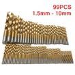 Specification of 99pcs: 1.5mm*16 pieces / 2mm*16 pieces /2.5mm*15 pieces /3mm*10 pieces /3.2mm*10 pieces /3.5mm* 10 pieces /4.5mm* 8 pieces /4mm*8 pieces /4.5mm*3 pieces /5mm*3 pieces / 5.5mm*2 pieces /6mm*2 pieces /6.5mm*2 pieces /8mm*2 pieces /10mm*2 pieces