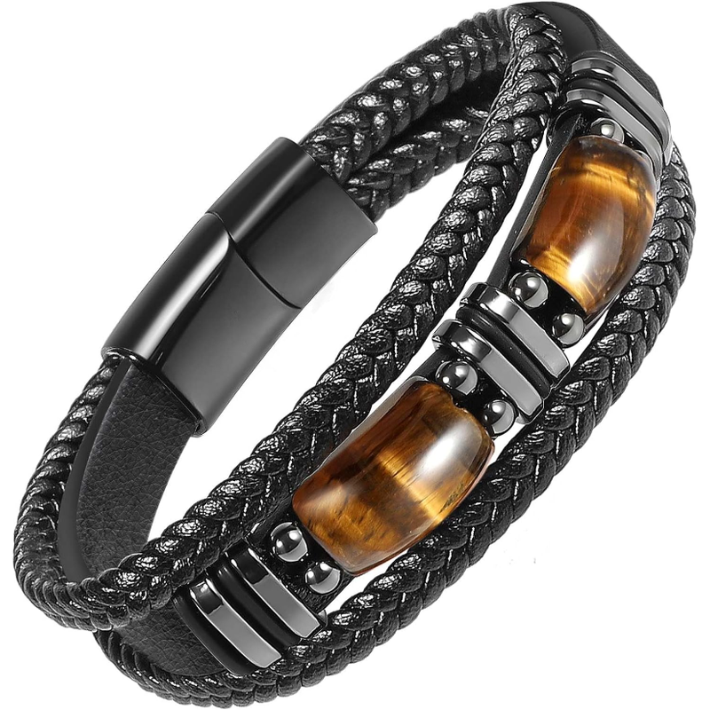 ✅【Handmade Jewelry Bracelets】 high-quality tiger eye stone and leather materials, strict quality control makes each bracelet comfortable to wear and easy to put on, and 21cm length is suitable for most men.