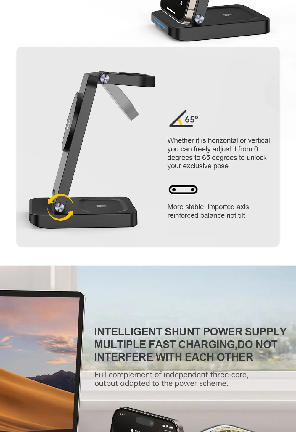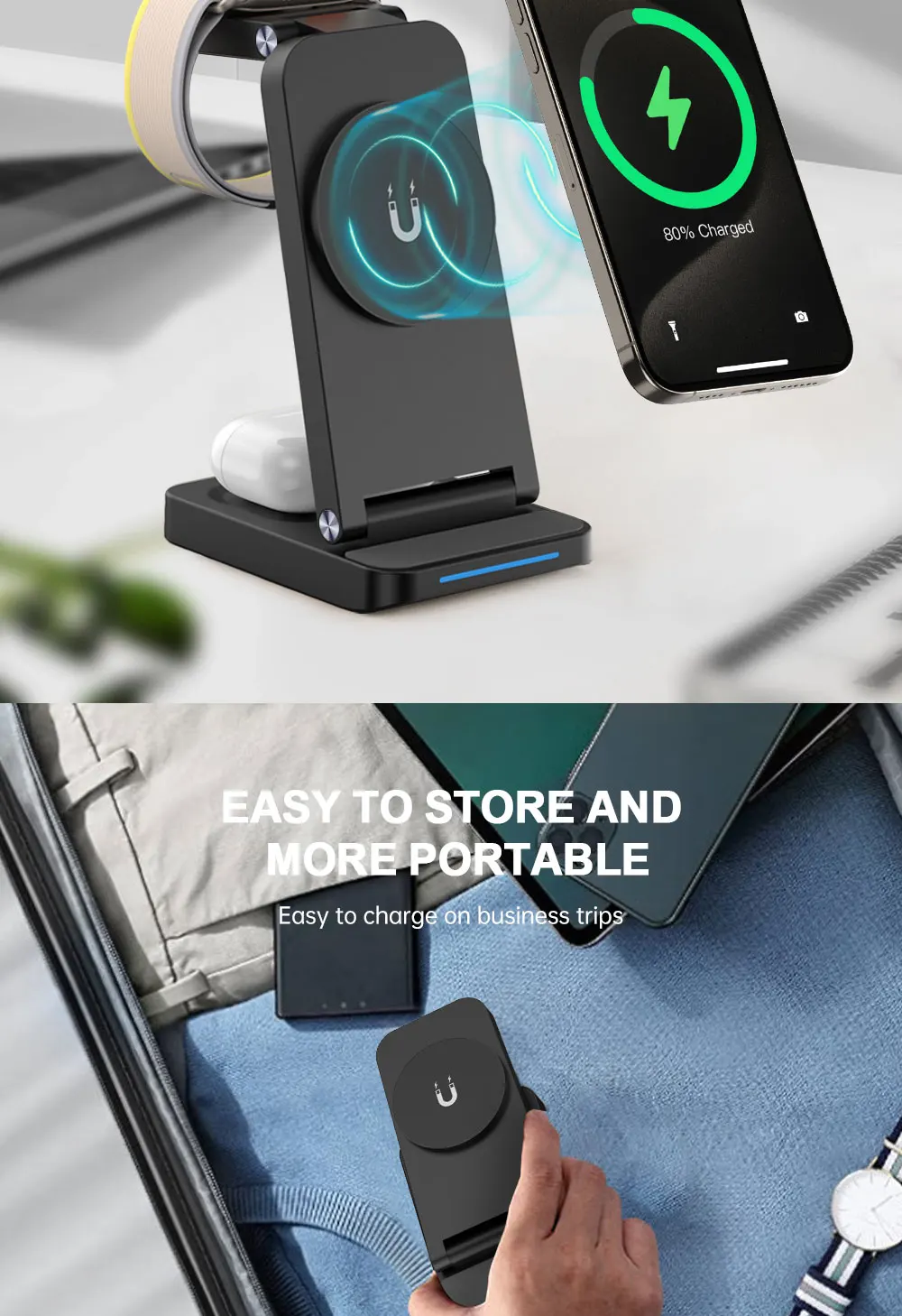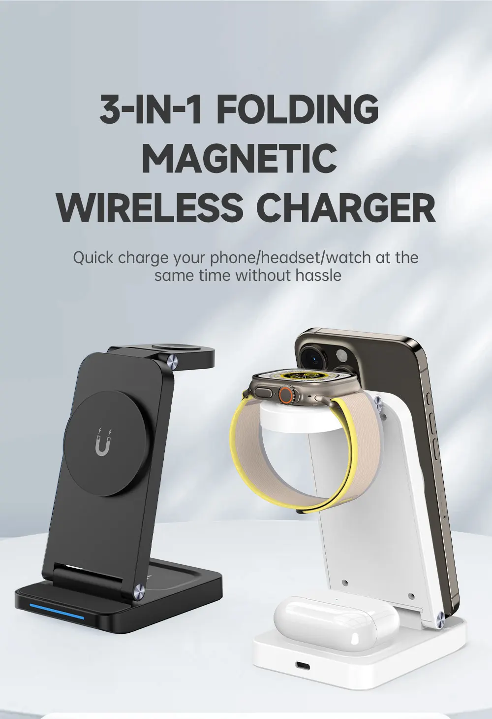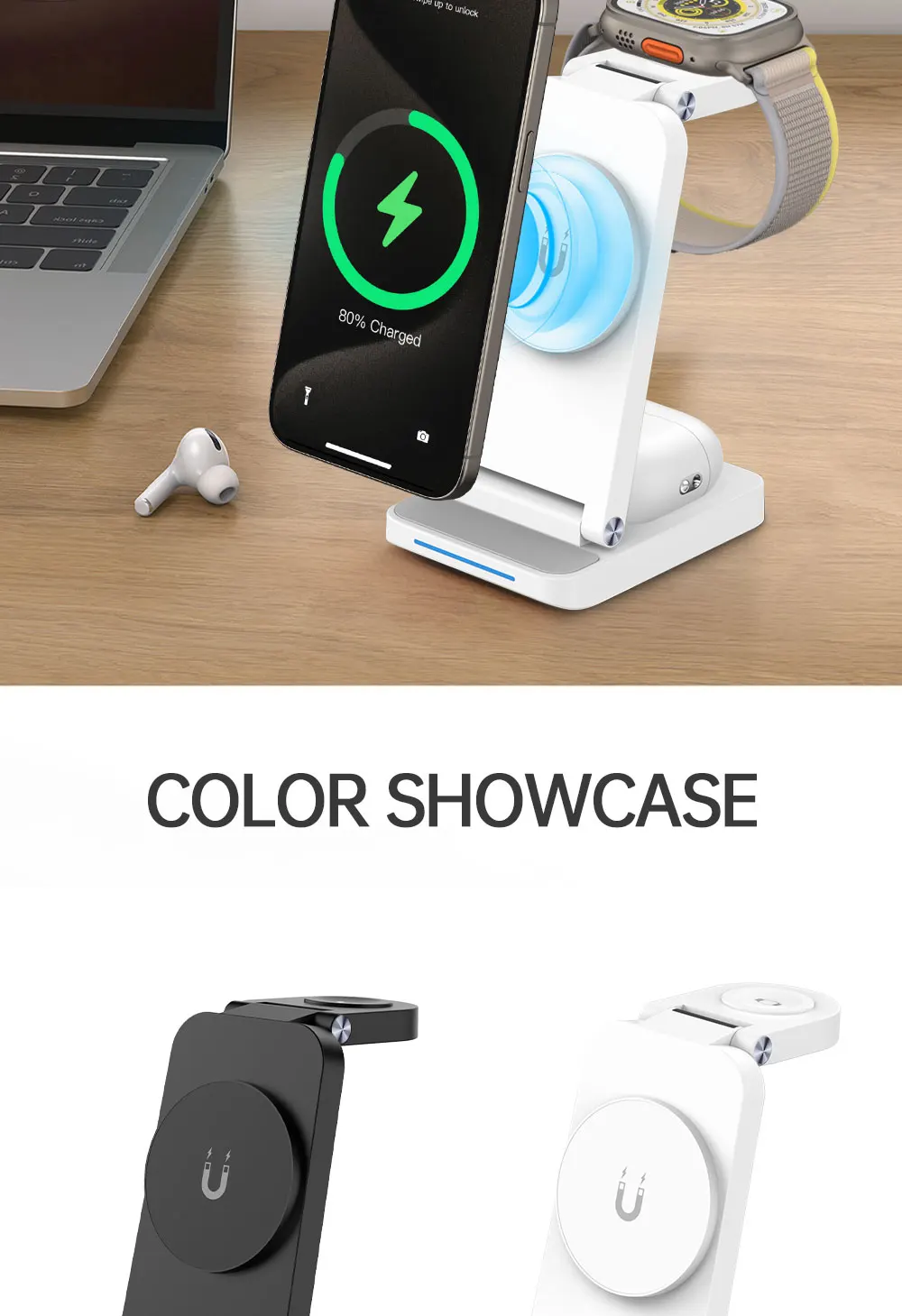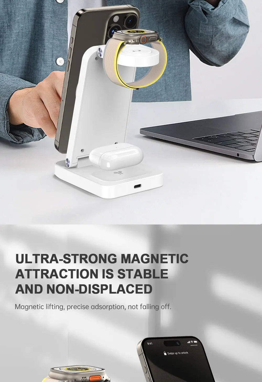TIMESS 3 IN 1 15W Wireless Charger For iPhone17 16 15 14 PROMAX For Apple Watch Series 11 10-1 For Airpods Pro Charging Station