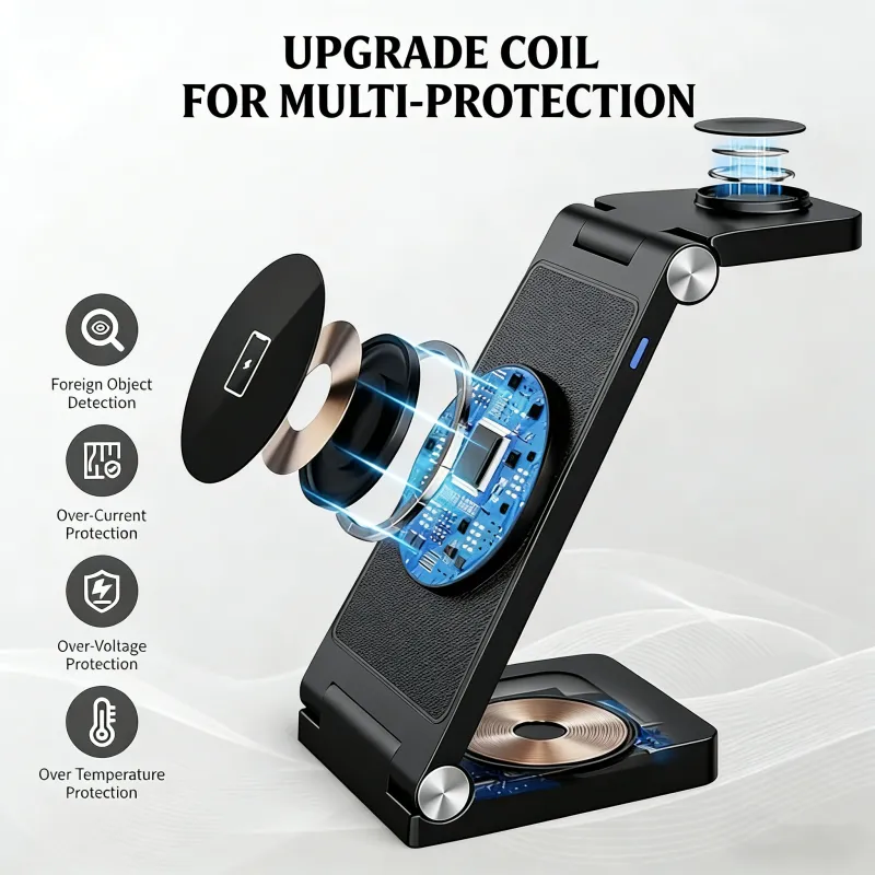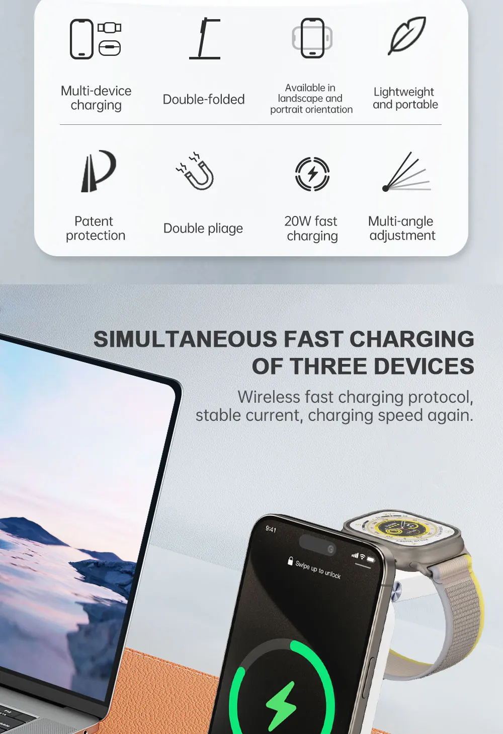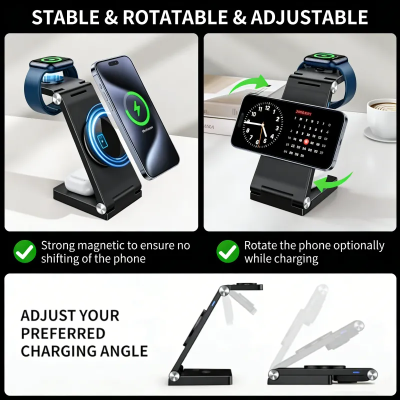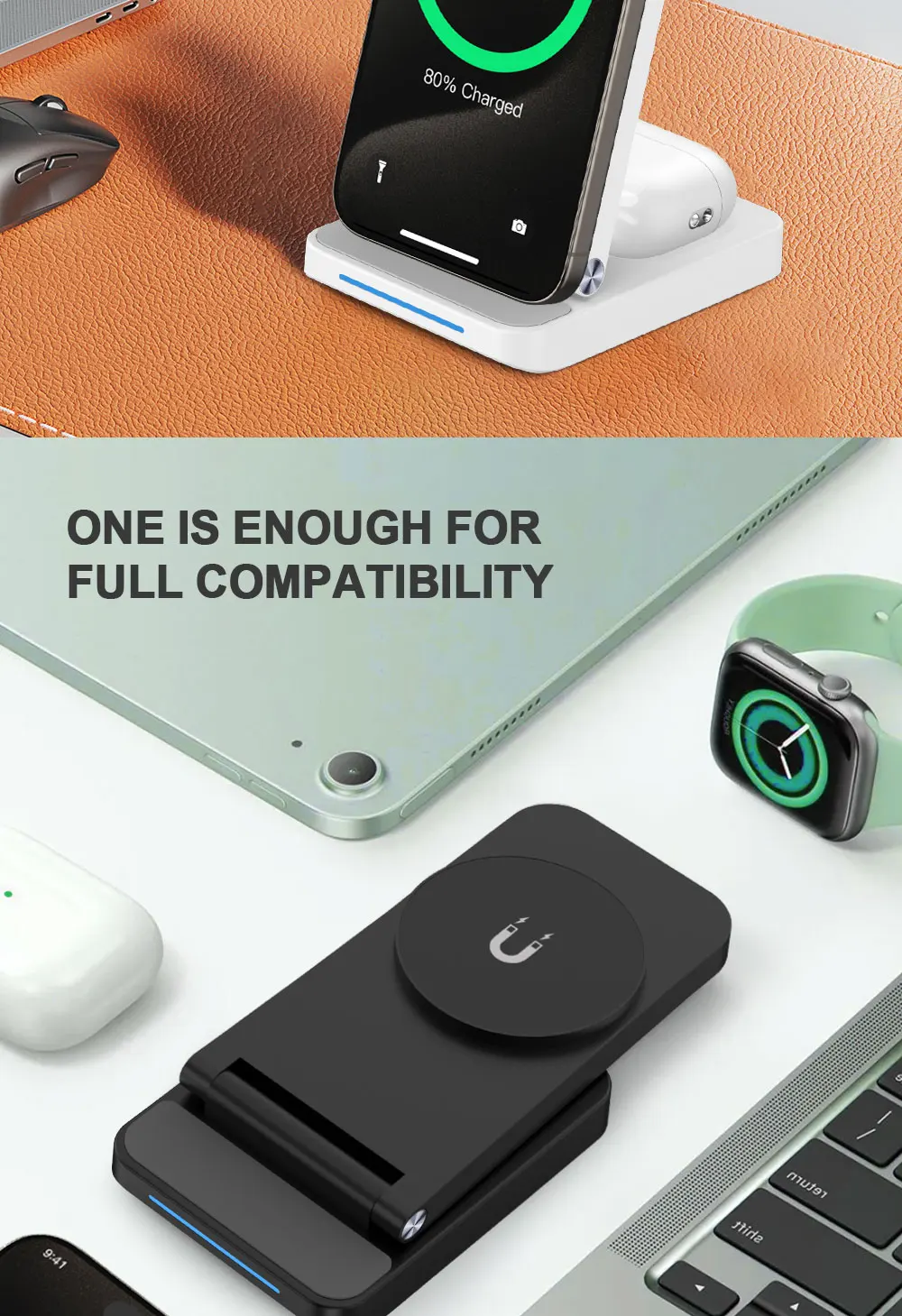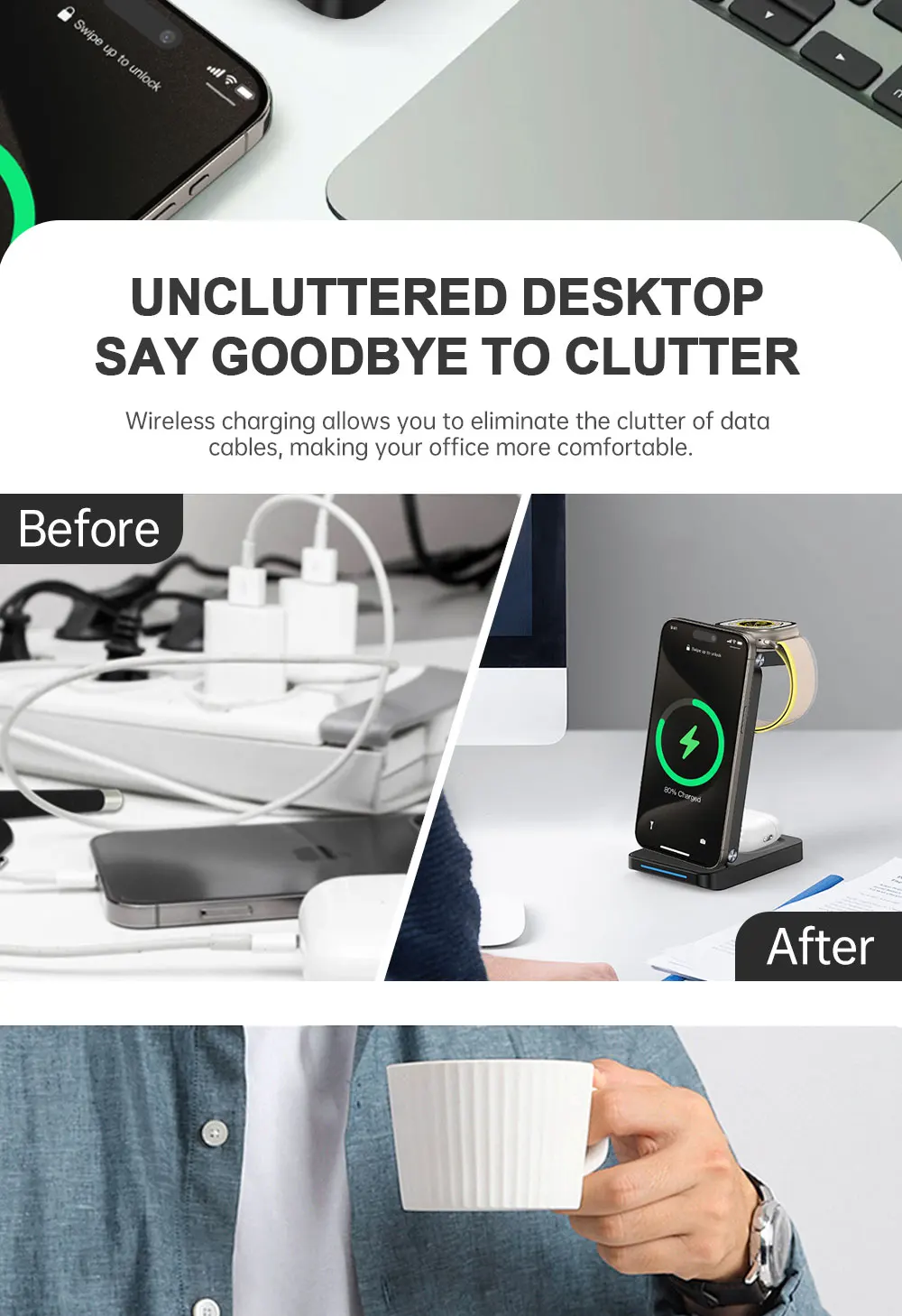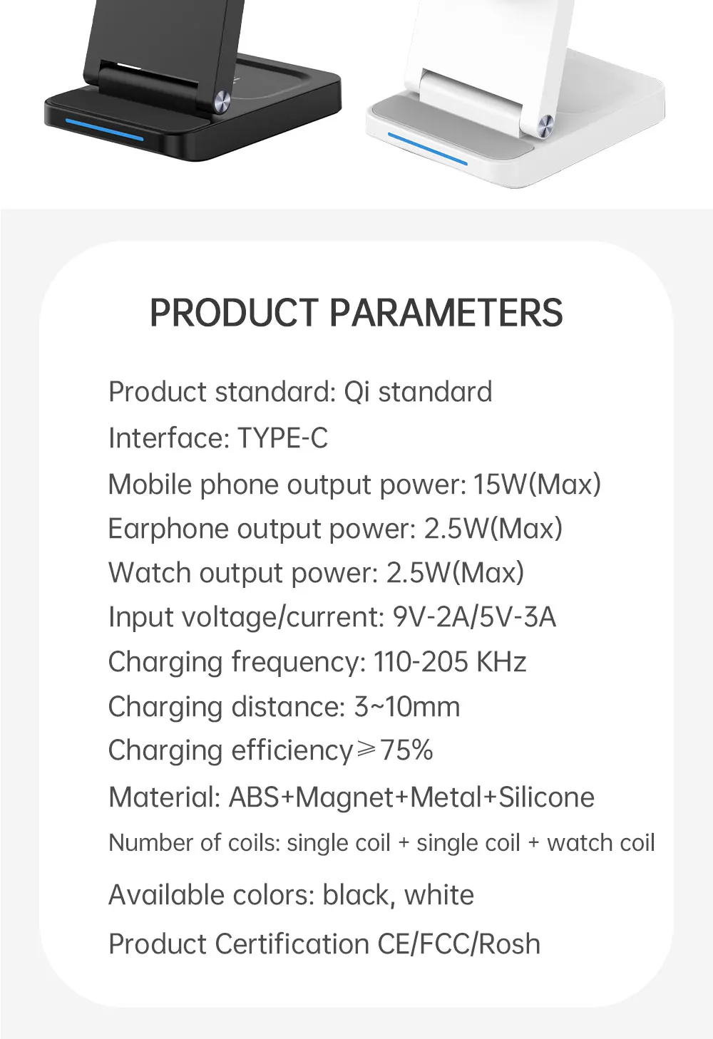TIMESS 3 IN 1 15W Wireless Charger For iPhone17 16 15 14 PROMAX For Apple Watch Series 11 10-1 For Airpods Pro Charging Station