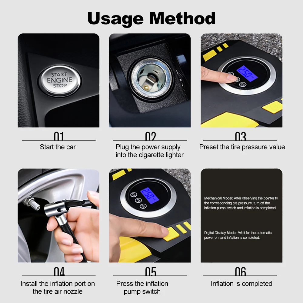 Multi-Purpose: Our air pump is not only suitable for 12V car tires, but also for motorcycles, bicycles, balls, rubber boats, beach floats, inflatable toys, etc.