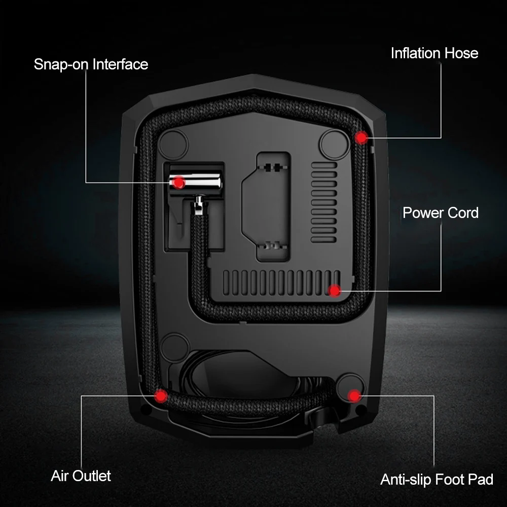LED Light: Designed for versatility, this car tire inflator comes with its own light, perfect for emergencies or nighttime use. The bright LED light illuminates your work area so you can safely inflate your tires even in low light conditions.