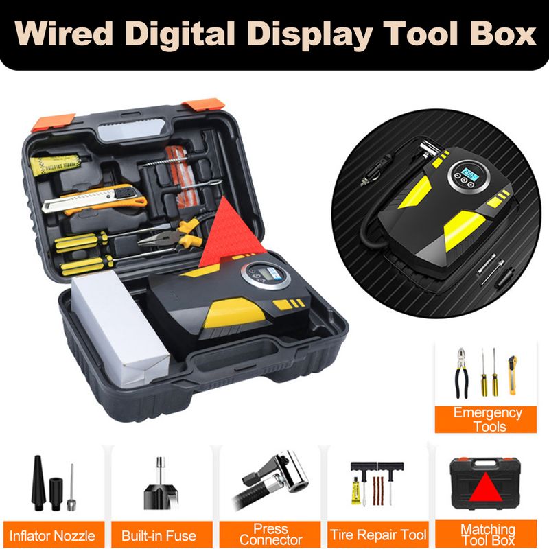 Space-Saving and Easy to Store: The power cord and inflation tube of the air pump can be stored on the back of the machine. Its compact size and portability, as well as the included tool box, make it very convenient and easy to store.
